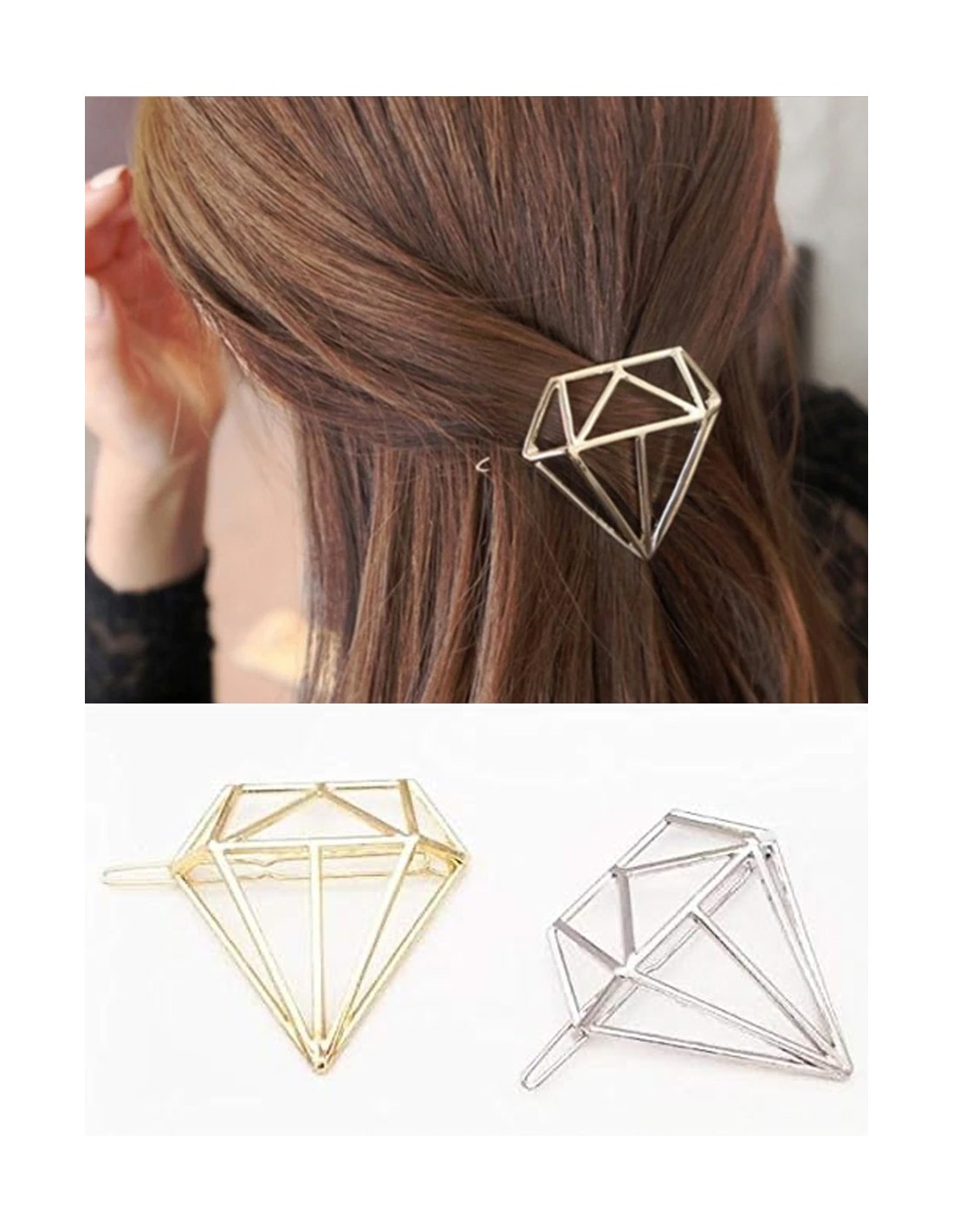 2 Diamant Haarspanges - Geometrischer 3D-Haarclip