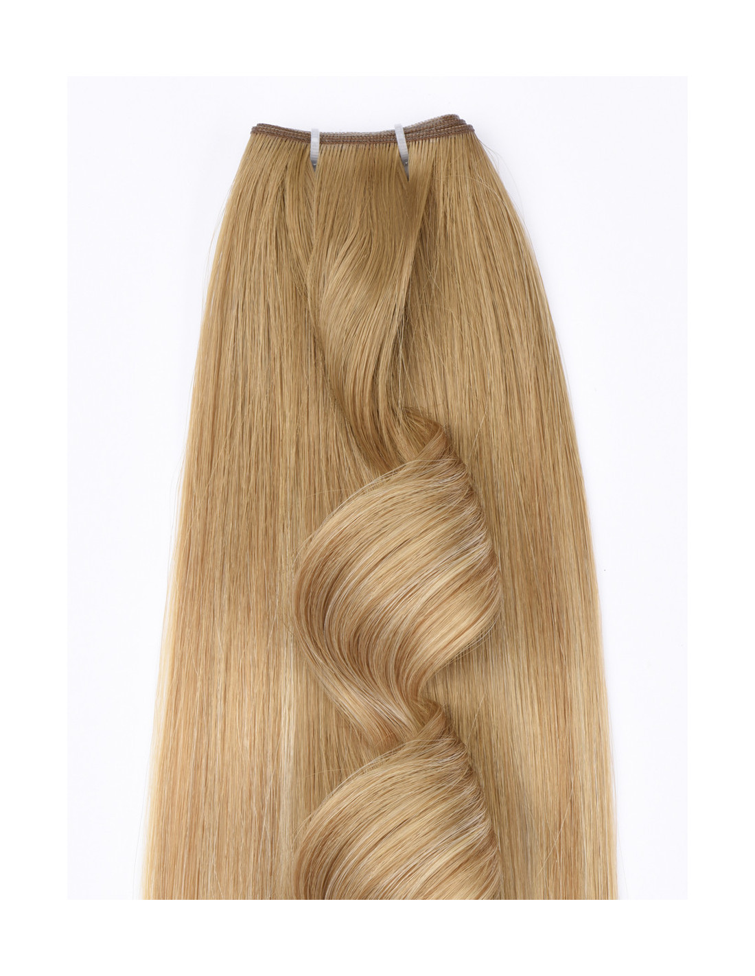 - Adhäsive Extensions: Die Naht des Genius Weft besteht aus Bio-Silikon. Das ist das gleiche hypoallergene Material wie der Klebestreifen deiner Tape Hair Extension.