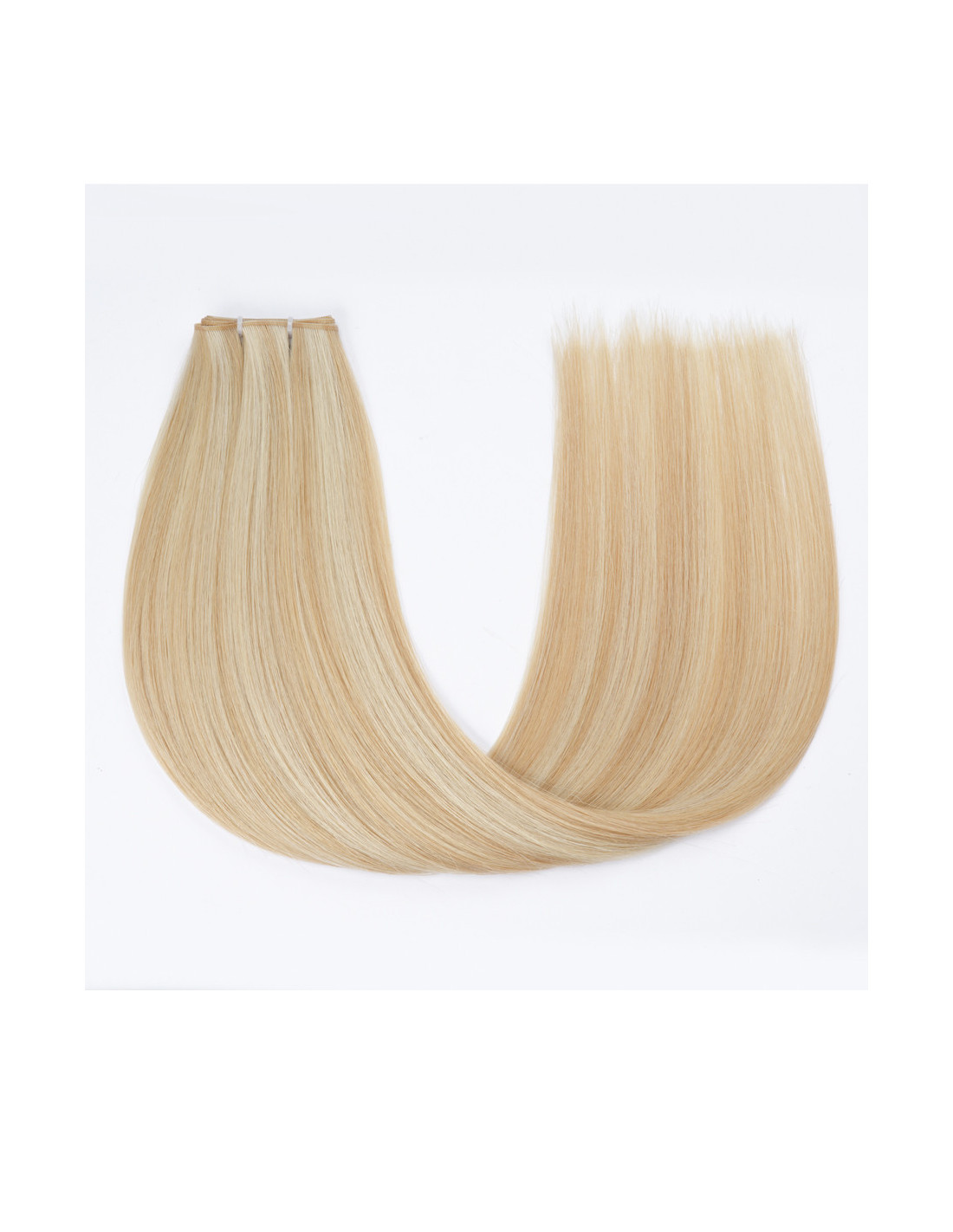 Die Anwendung ist super einfach dank ihres ultradünnen und flachen Genius Weft Silikonbands. Schluss mit Irritationen und sichtbaren Nähten! Diese revolutionäre Naht ist sowohl widerstandsfähig als auch flexibel und bietet maximalen Komfort und absolute Diskretion. Mit diesen russischen Balayage Sunset Blond Extensions sieht es aus, als wären es deine echten Haare, nur mit einem garantierten "Urlaubs-Glow"!