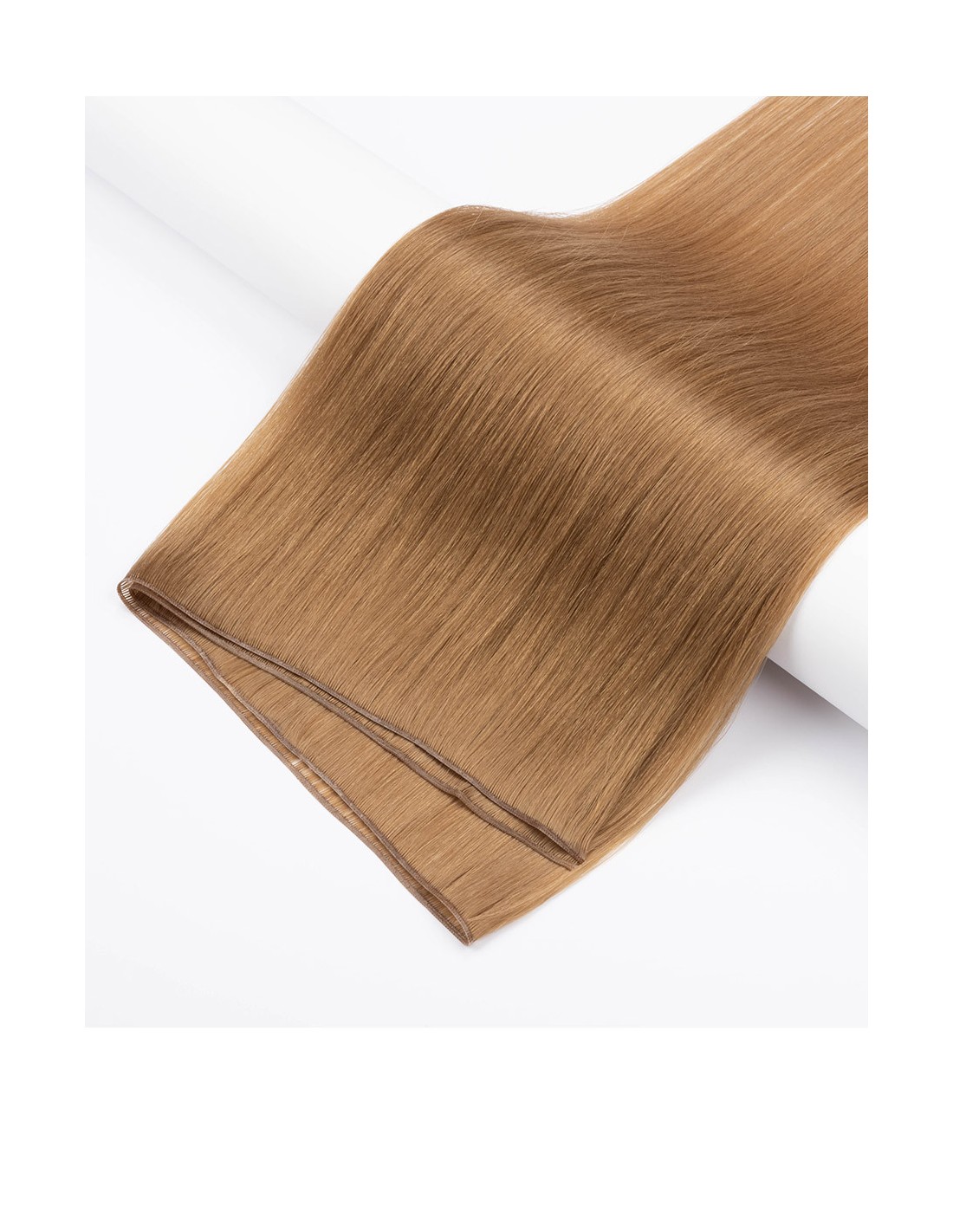 Empfohlene Menge: Für eine komplette Haarverdichtung oder -verlängerung reichen in den meisten Fällen 2 Tressen (100 g) aus. Dank der extrem feinen Genius Weft-Verarbeitung können mehrere Bänder übereinander eingesetzt werden, ohne sichtbare Verdickung am Ansatz.