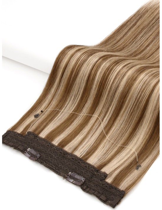 Unsere Halo Hair oder Swift Extensions aus natürlichem Remy Haar professioneller Qualität sind ein Kit, der selbst angesteckt werden kann.