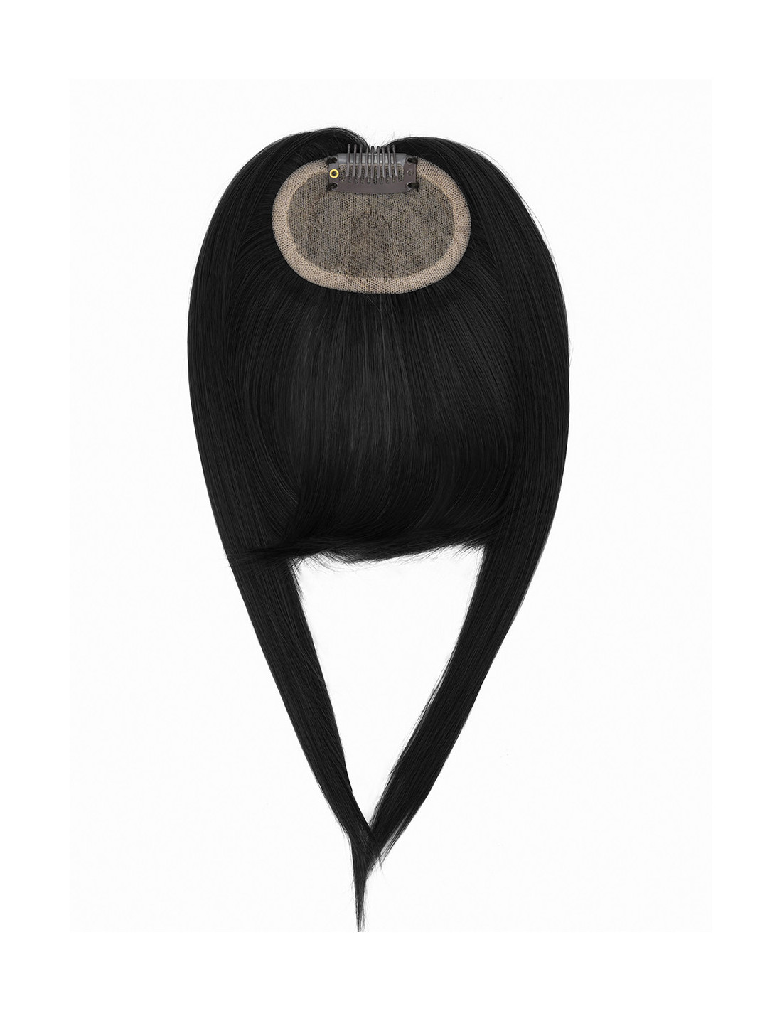 Die Basis besteht aus einem ovalen Lace-Wig-Element, in das ein einzelner Clip eingenäht ist. Dieses Oval misst etwa 5 cm Höhe und 7 cm Durchmesser. Form und Material sorgen für einen idealen Halt – komfortabel, diskret und mit einer Optik, die den natürlichen Haaransatz imitiert.