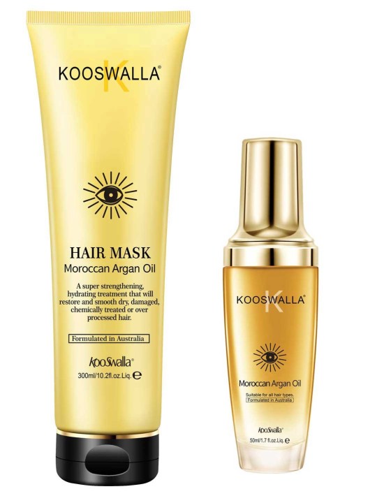 KooSwalla Marokkanische Arganöl-Haarmaske, hergestellt aus einer speziellen Mischung von Inhaltsstoffen, einschließlich Vitamin E, reichem Arganöl. Diese einzigartige Lotion rehydriert, revitalisiert und repariert Ihre Strähnen, sodass sie sich durch Glanz und seidige Glätte und natürliche Stärke des Haares auszeichnet, die tief in die Haarfaser hinein nährt und dem Haar ultimativen Glanz verleiht. Verwenden Sie es einmal pro Woche für Ihre Haarverlängerungen, um die seidige Perfektion zu erreichen, die Sie verdienen.