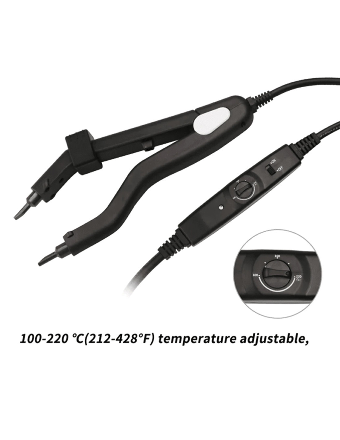 Du arbeitest mit Keratin-Mikrokapsel-Extensions und merkst, dass eine normale Heißzange einfach zu grob ist? Diese Spezial-Heizzange für Micro-Keratin hat deutlich schmalere Spitzen als eine Standardzange und wurde speziell dafür entwickelt,