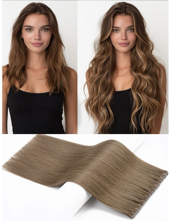 Tape Extensions : 8 Haselnussbraun, 50 cm, 10 Tapes Extensions Remy Echthaar