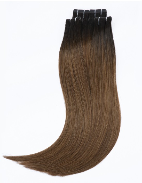Tape-In Extensions B1B-2/6 – Ombré Dunkelbraun 50cm, 25gr 10 Tapes