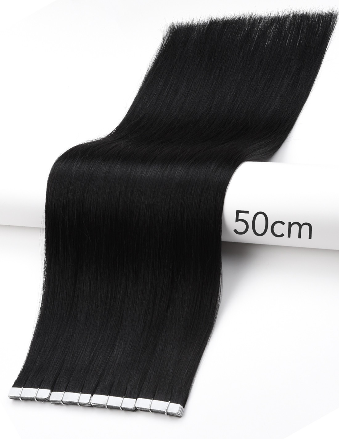 Kleben Extensions - 1 JET Schwarz - 50 cm, 10 Tapes Extensions Remy Echthaar