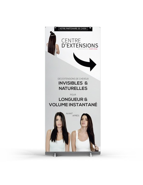 Dieser Banner wurde speziell entworfen um die Aufmerksamkeit Ihrer zukünftigen Kunden anzuziehen. Zwei Möglichkeiten bietet sich ihnen an, eine traditionelle Version oder die Andere entsprechend aller Bedürfnisse Ihres Salons. Der Banner ist zu 100% anpassbar zu den Farben Ihres Salons, mit oder ohne Erwähnung der Marke Exten’s Hair.