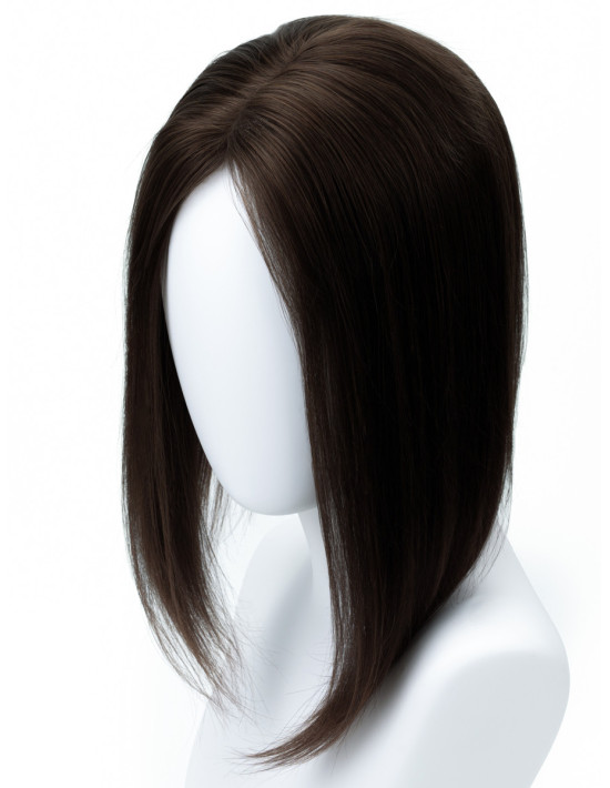 Dieser Hair Topper in Brun Foncé ist eine leichte und komfortable Lösung, um den Oberkopf zu verdichten, ohne eine Vollperücke tragen zu müssen.