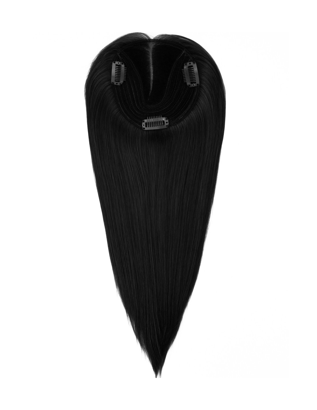 Ideal bei lokaler Ausdünnung oder beginnender Alopezie: Dieser schwarze Hair Topper bringt die Fülle zurück auf den Oberkopf, während deine eigenen Längen sichtbar bleiben.