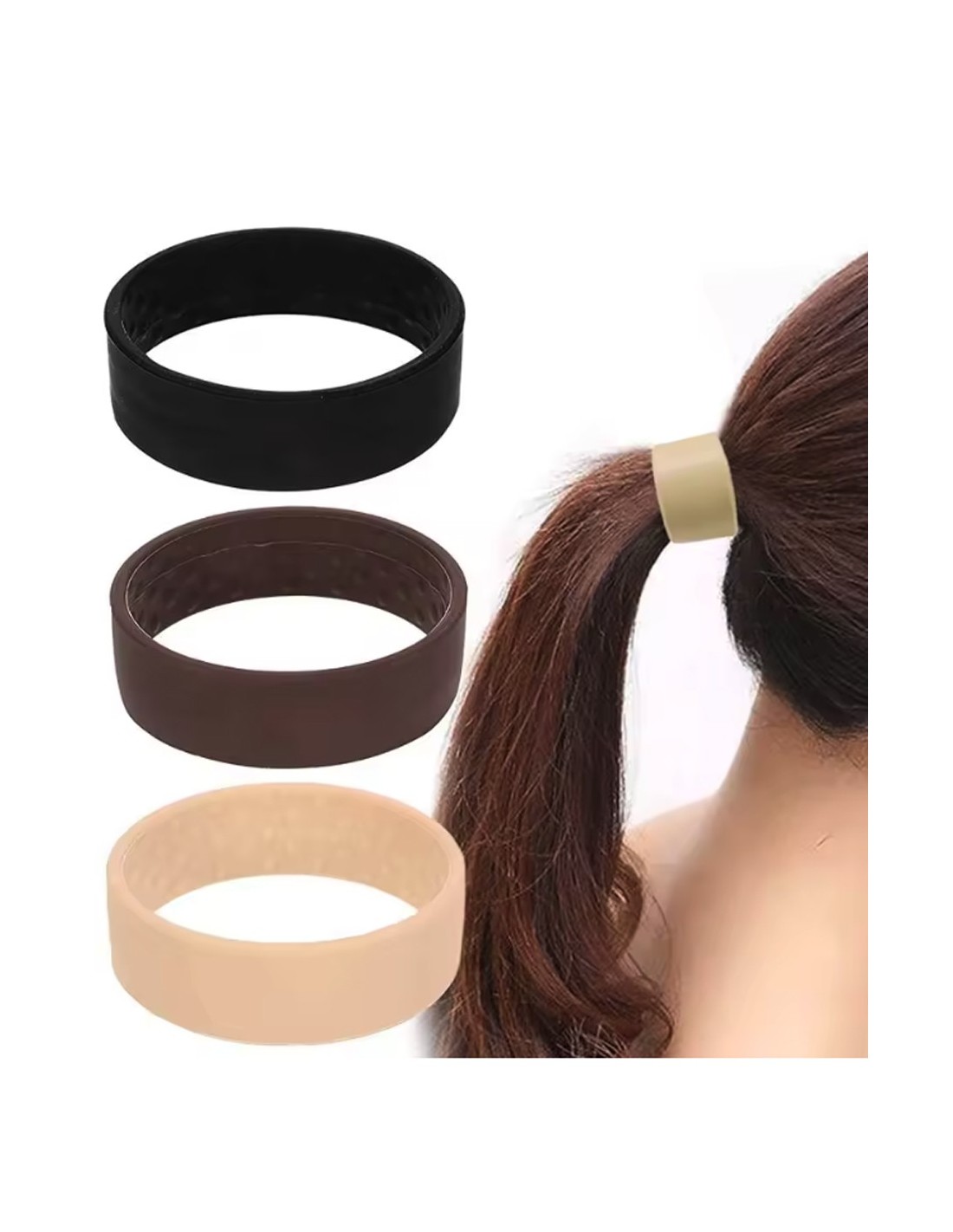 Le secret : un silicone antidérapant, doux au toucher, qui s’accroche légèrement à la cuticule pour empêcher les descentes de tension. Résultat : ta pony reste haute, plus ronde, plus « pleine », même si tu n’as pas beaucoup de volume naturellement. L’élastique est sans métal, limite la casse et les marques, et se retire sans arracher.