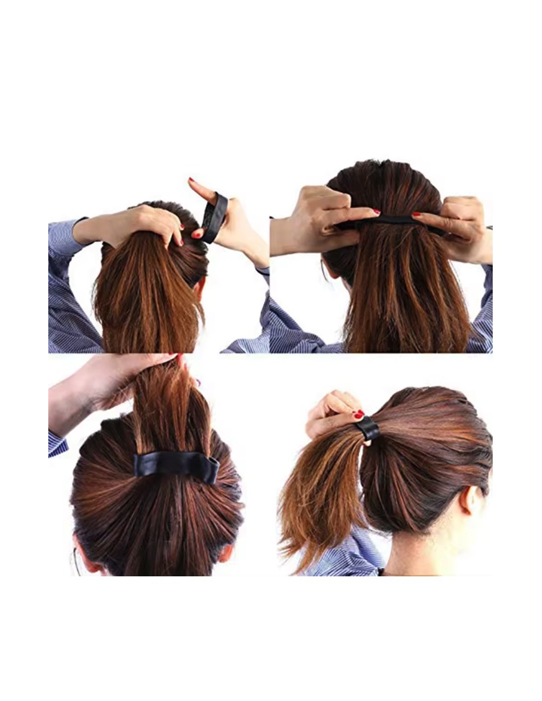 Élastique volumisateur en silicone haute adhérence et structure creuse : en le courbant autour de la base, tu crées l’illusion d’une queue de cheval très épaisse sans alourdir. Matière antidérapante qui répartit la pression, évite la glisse et limite les marques. Sans métal, confortable, retrait facile. Compatible extensions (pose au-dessus des points : adhésives, kératine, tissage, clips). Idéal pour queue haute, demi-queue, chignon bas ou bubble pony. Disponible en trois couleurs : noir, brun, blond. Astuce : 2 tours pour cheveux fins, 3 max pour cheveux épais ; ajuste en tirant doucement pour booster le bombé. Entretien simple : essuyage à sec, pas d’huiles ni de solvants.