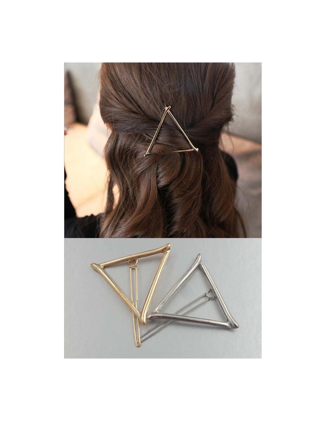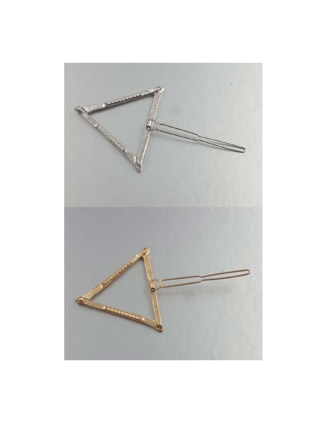 Cette pince à cheveux triangulaire vous permettra de tirer vos cheveux en arrière de manière élégante et raffinée. Elle est disponible en métal doré ou argenté.