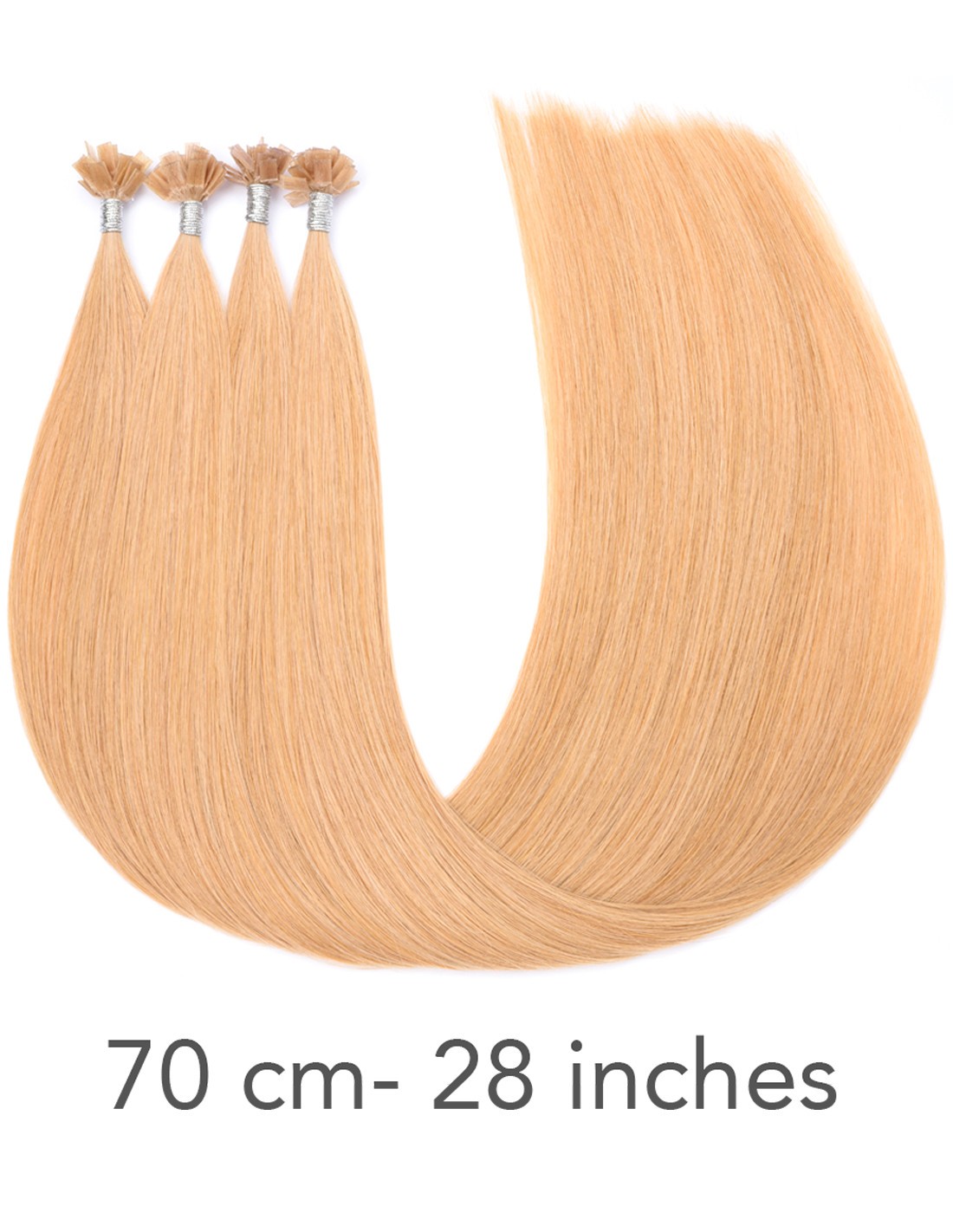 La gamme d'extension à chaud XXL mesure 70 cm de long, soit 28" (28 pouces). Les pointes de nos mèches à la kératine sont bien fournies. Votre chevellure vous arrivera aux hanches, ou plus long selon votre taille. Ce sont des cheveux naturels d'origine indienne. Des extensions de cette longueur sont très rares car des cheveux indiens aussi long ne sont pas faciles à trouver.