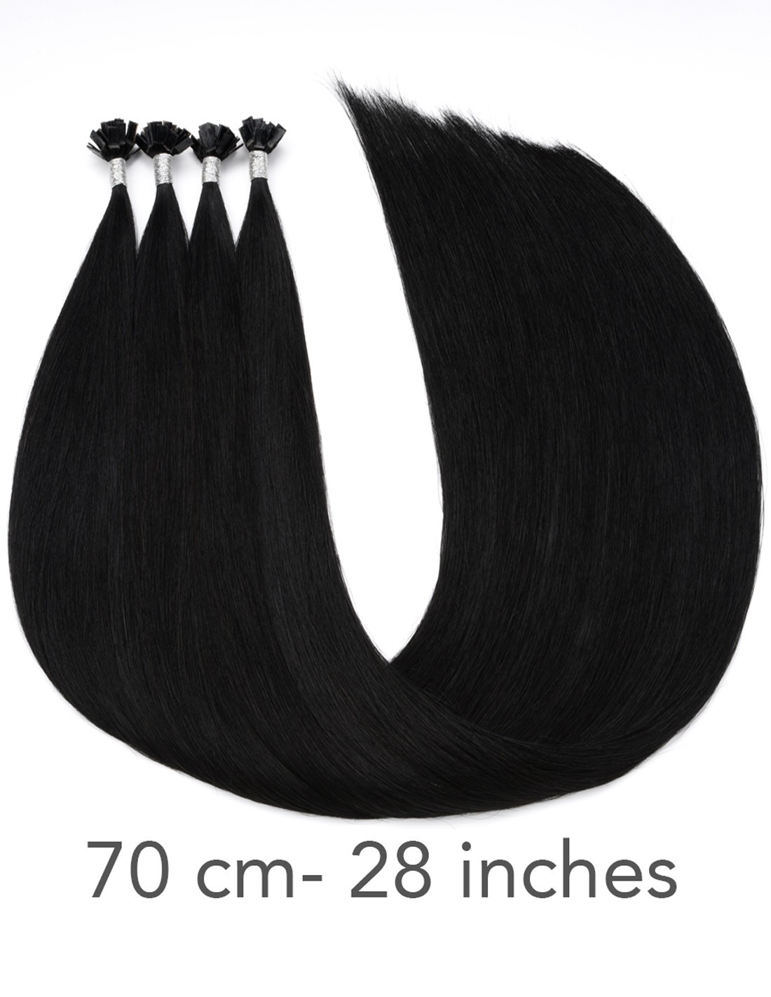 Extension à chaud - 70 cm - Noir éclatant 1 - Cheveu Naturel Kératine, Remy Hair