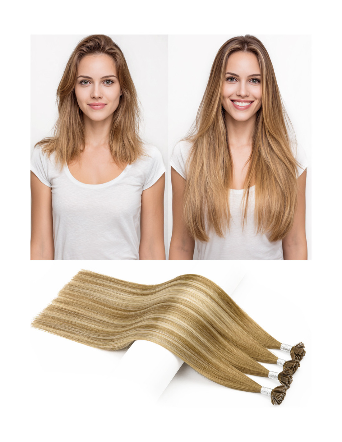 25 Extensions à Chaud Ombré Hair - 6 Châtain Tie and Dye- 50 cm