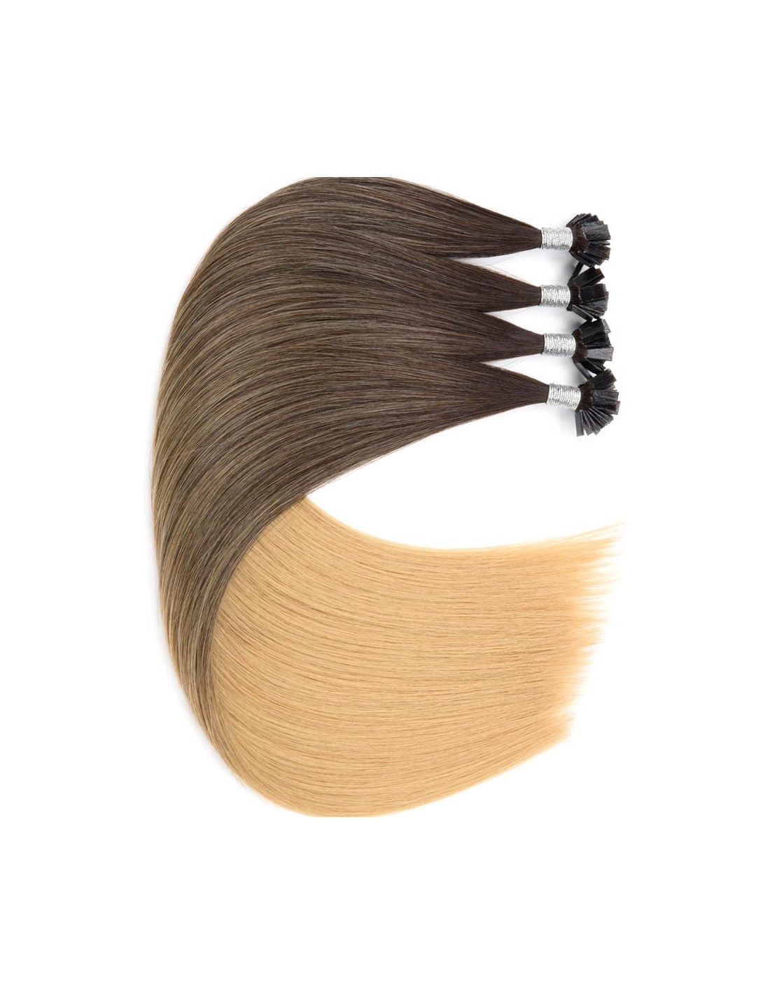 25 Extensions à Chaud Ombré Hair - 8 Noisette Tie and Dye Blond Clair- 50 cm