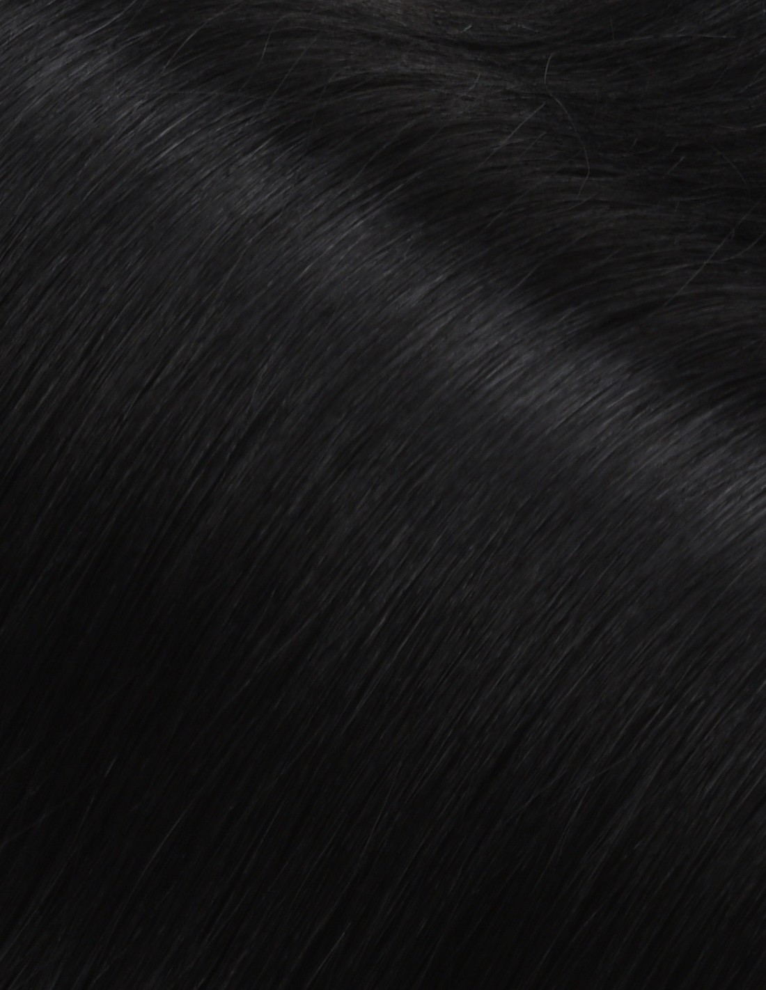 La teinte noir intense (1) est un noir profond, homogène et brillant. Elle est idéale si tu as une base naturellement foncée ou si tu recherches un noir bien marqué, sans reflets parasites. La couleur reste stable dans le temps, à condition d’utiliser une routine adaptée aux extensions en kératine.