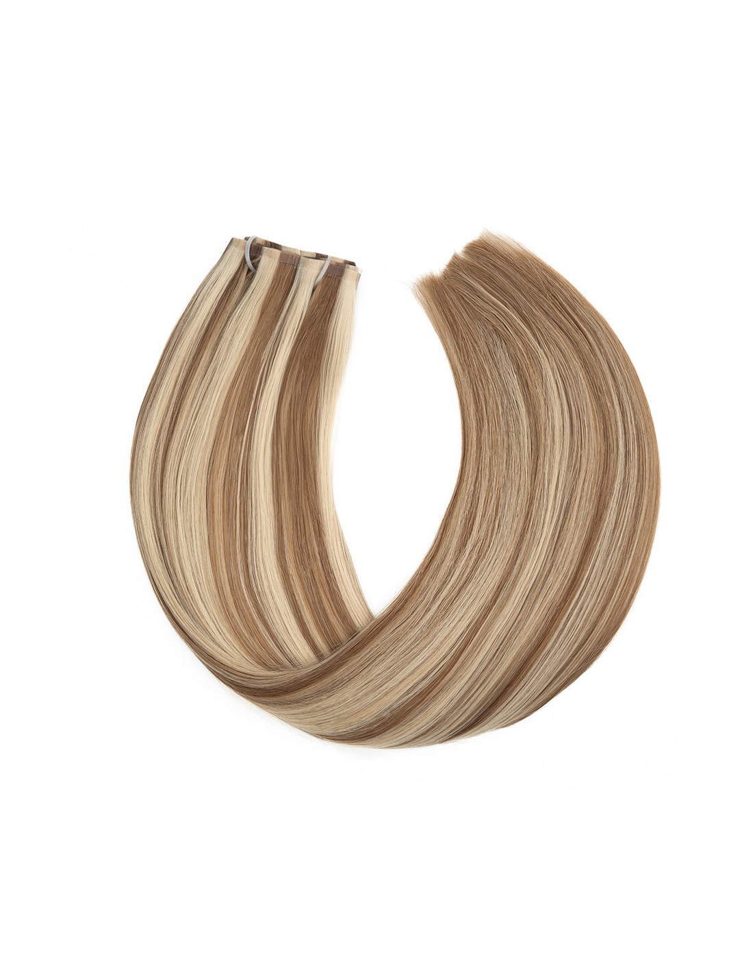 Nos Extensions à Clips Seamless nouvelle génération – Balayage Miel Platine Cendré
