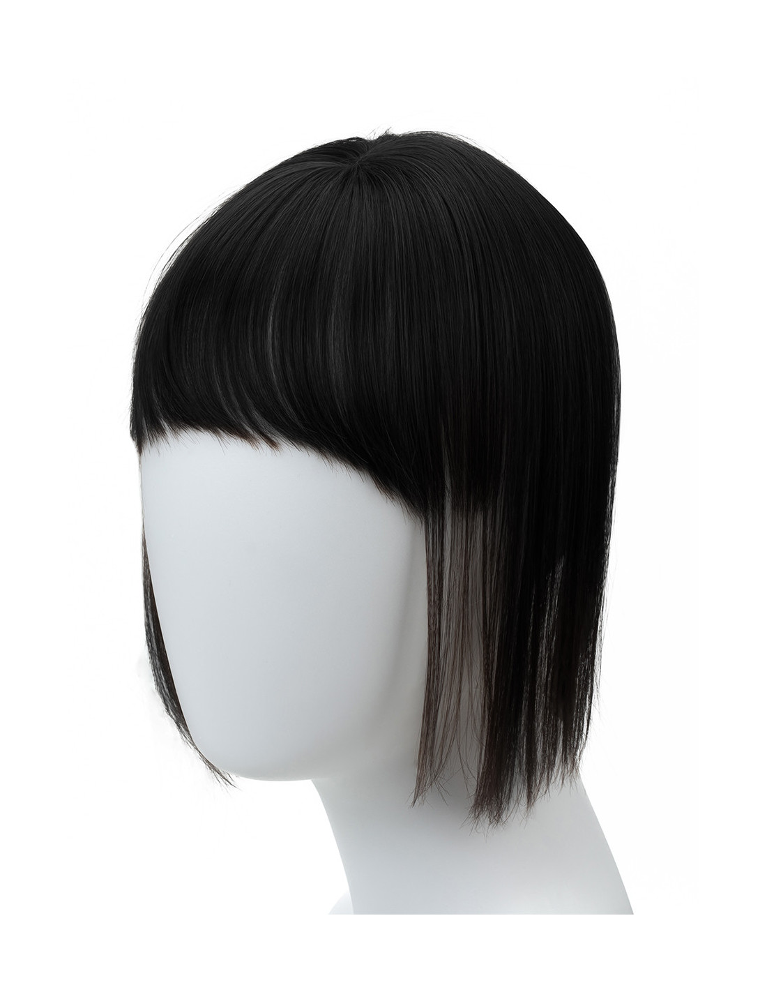 En résumé : longueur principale de 14 cm, deux mèches latérales de 25 cm, base ovale en lace wigs de 5 × 7 cm avec un clip solide et discret — le combo parfait pour une frange qui se fond vraiment dans tes cheveux.