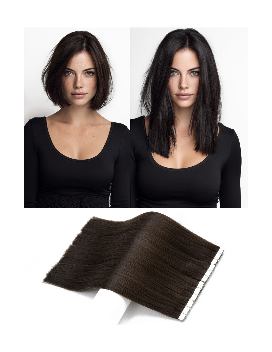 Extensions Adhésives Cheveux Naturels - 30 cm, 25 grammes pour 10 bandes d'extensions
