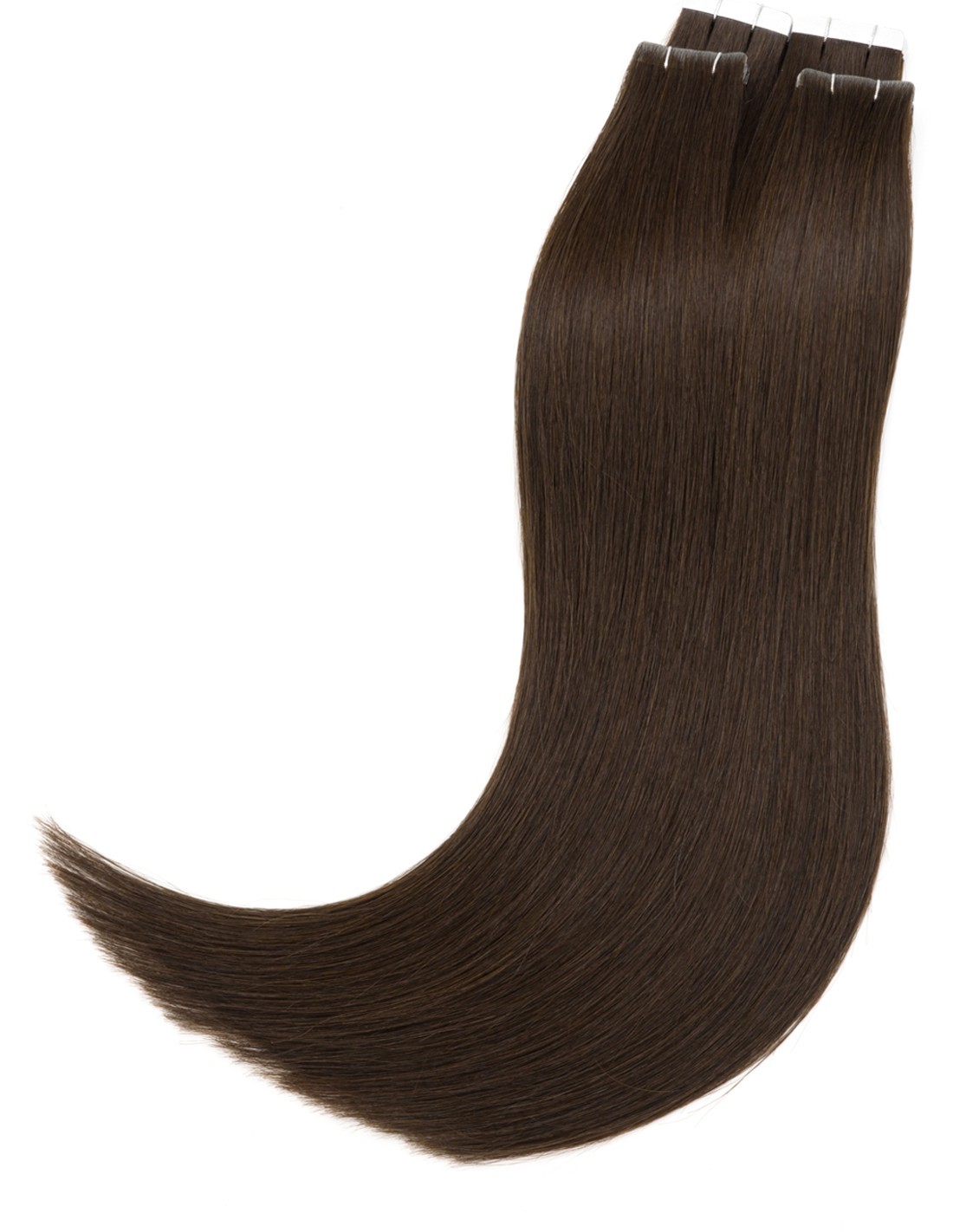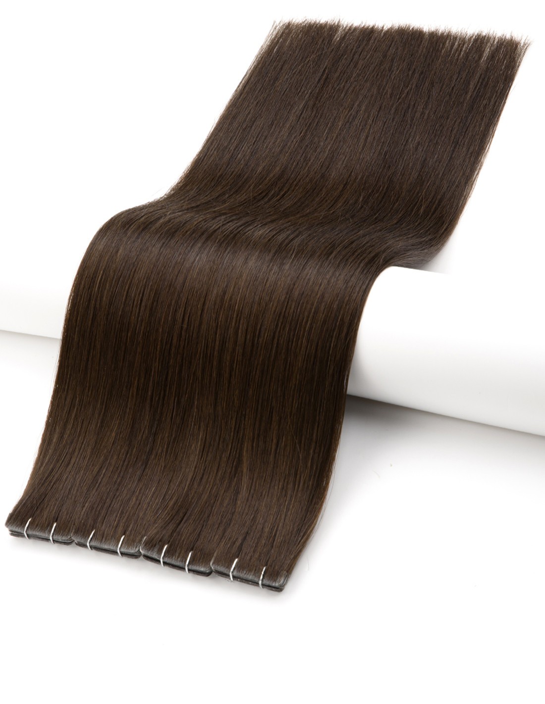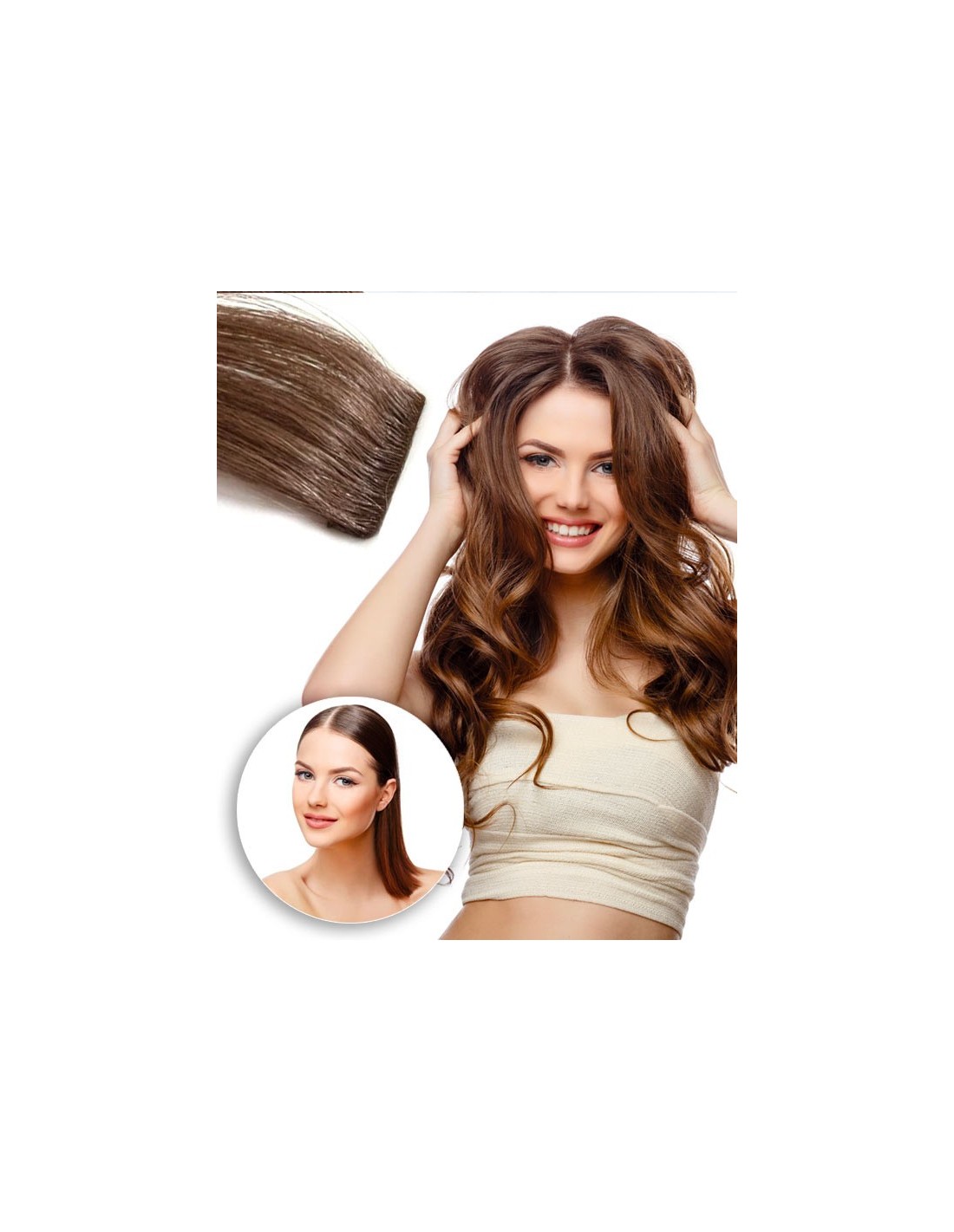Les extensions adhésives invisibles sont également connues sous le nom d'extensions à bandes adhésives injectées. Elles consistent en des mèches de cheveux qui sont attachées à vos propres cheveux à l'aide d'une fine bande adhésive. La bande adhésive est transparente en silicone, les cheveux de l'extension sont injectés à l'intérieur, ils se fondent avec votre cuir chevelu, ce qui les rend quasiment invisibles.