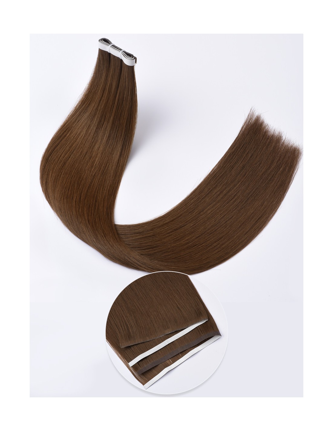 2x Longues Extensions Tape Hair - Cheveux Naturels Brun Foncé