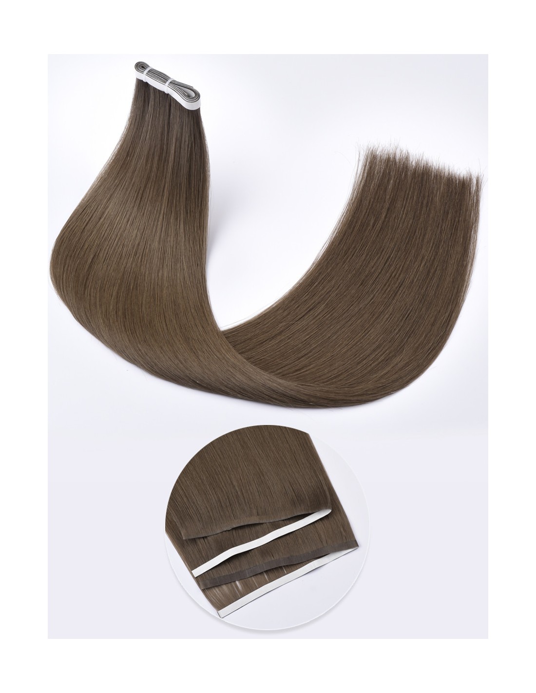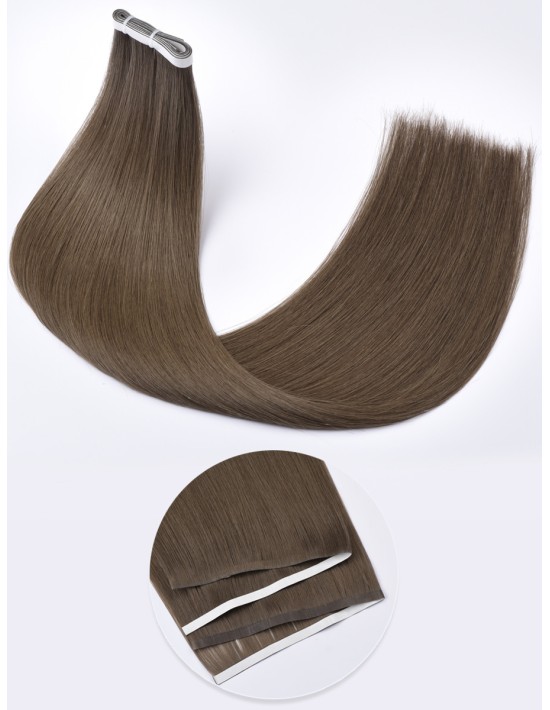Longue Extensions à Coller Monobande en Brun Clair Cendré, réalisées en cheveux naturels indiens (qualité 9A+ vierge).