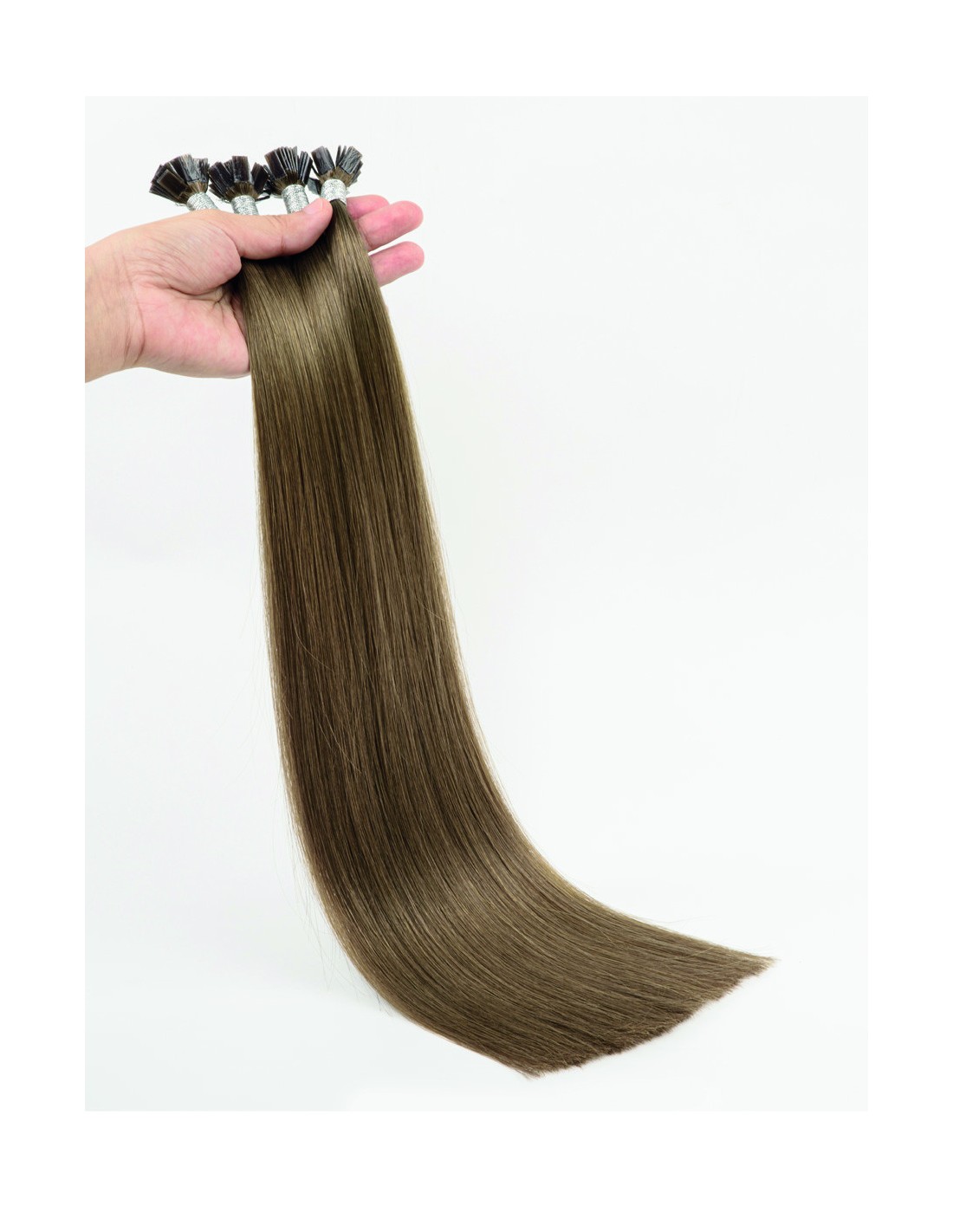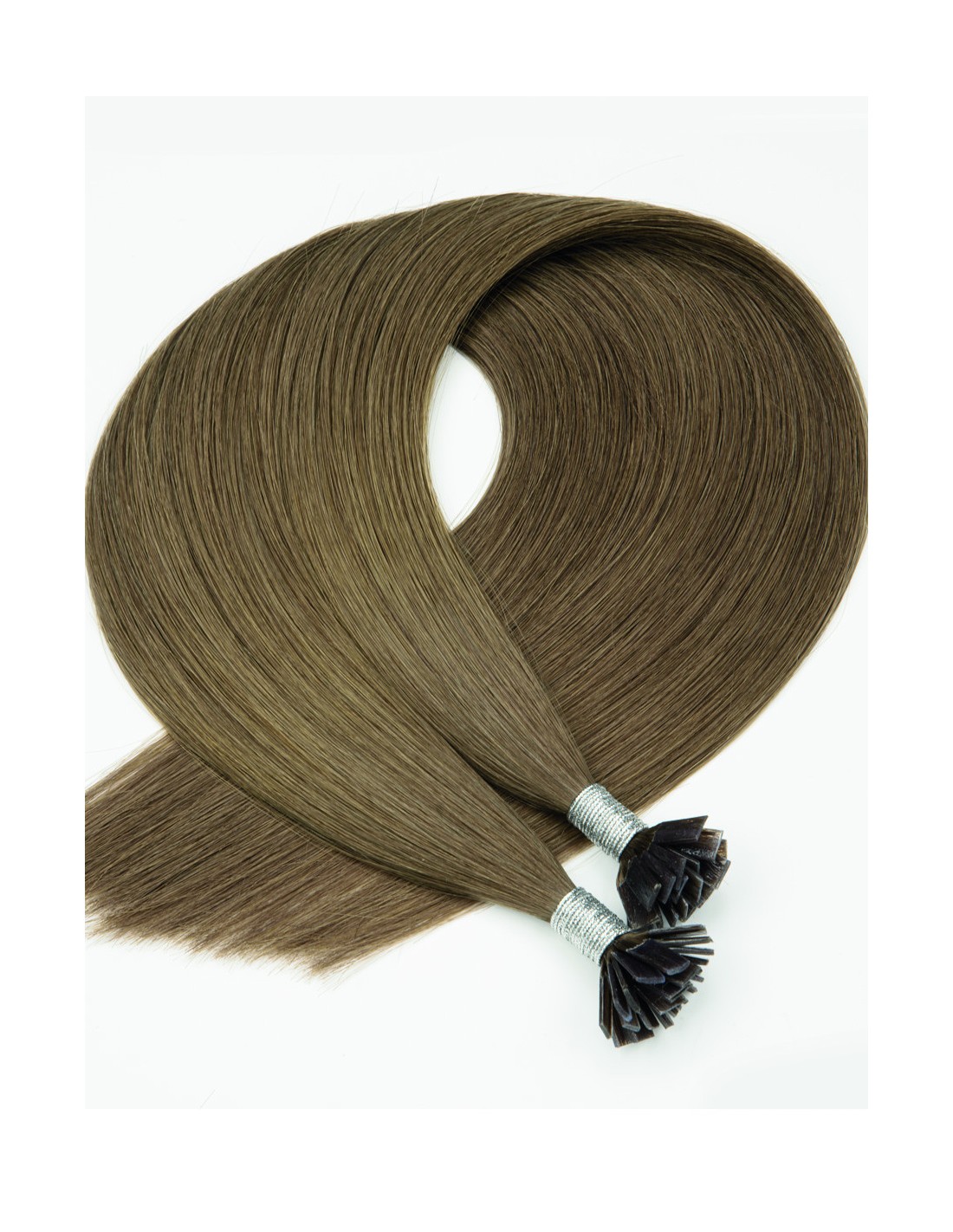 25 Extensions kératine Brun Clair Cendré 9A de 30 cm avec mèche keratine à chaud