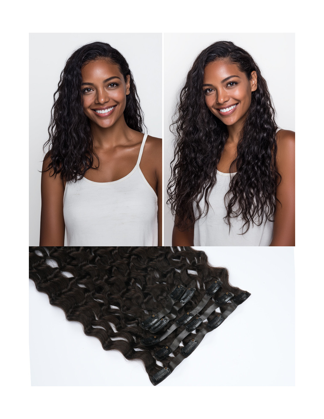 Extension à Clips Ondulées / Bouclées 50cm 110gr - 100% Cheveux naturels seamless