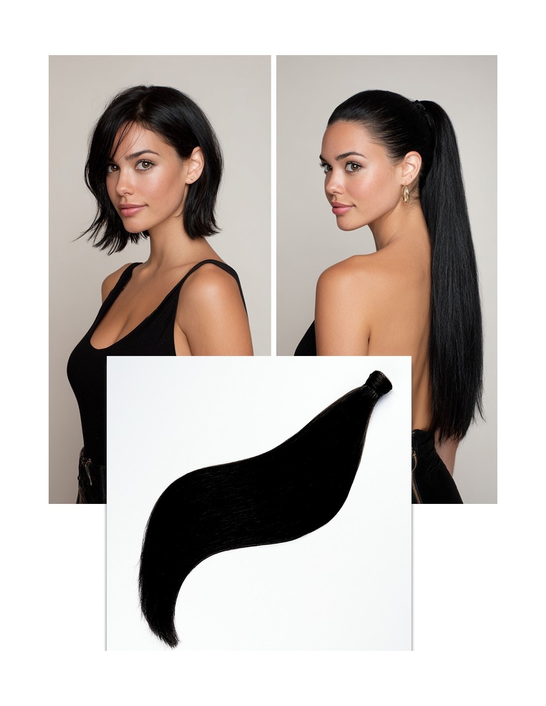Notre gamme de postiches a été développée après de longs tests. Le but : une ponytail dense, aux pointes épaisses, mais légère et confortable.