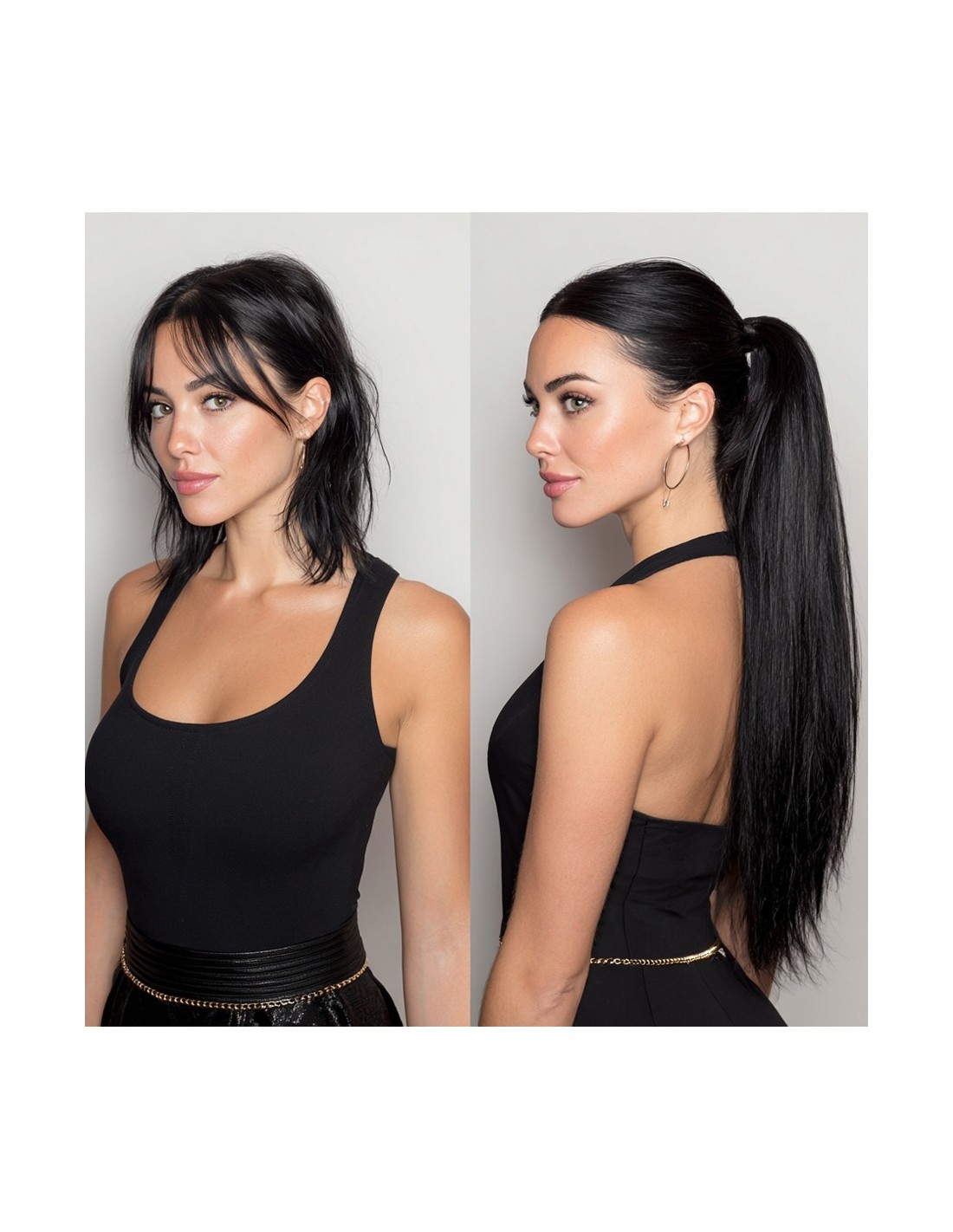 L'idée est géniale : vous faites votre petite queue habituelle (même avec les cheveux un peu sales, on ne juge pas !), vous clipsez votre extension et vous camouflez la fixation avec une mèche. Hop, terminé ! Même ma sœur qui a deux mains gauches y arrive sans problème. Le truc magique, c'est que ça marche à tous les coups : cheveux raides pour un look pro, ondulations sexy pour un date, ou même un style plus cool pour traîner avec les copines.