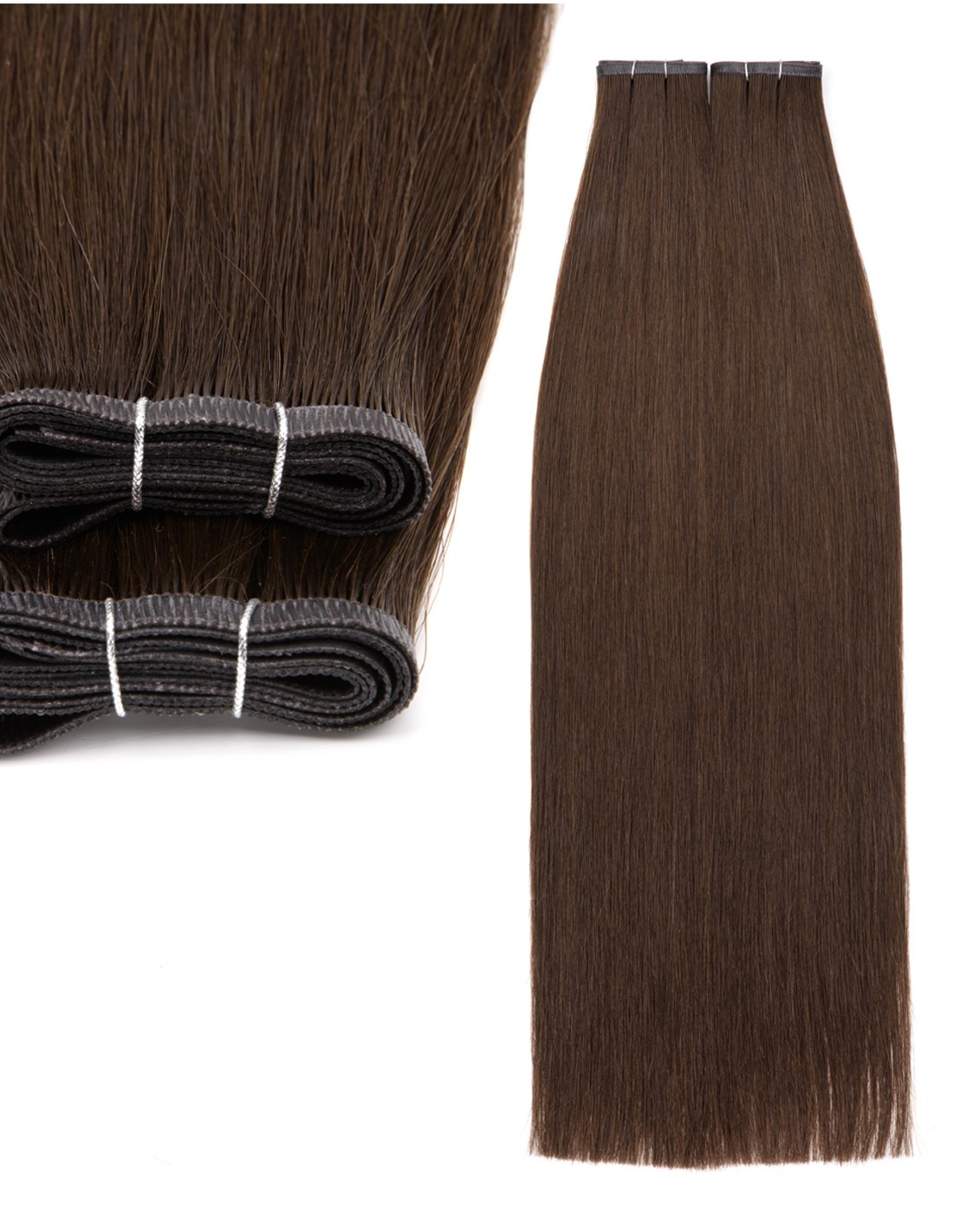 Ici, on parle de cheveux russes Remy d’origine indienne de très haute qualité, sélectionnés pour leur finesse et leur souplesse. Chaque bande de tissage fait environ 50 g, ce qui te permet de composer ta chevelure comme tu le souhaites : tu peux mixer plusieurs bandes, plusieurs teintes, ou simplement compléter une base déjà fournie.