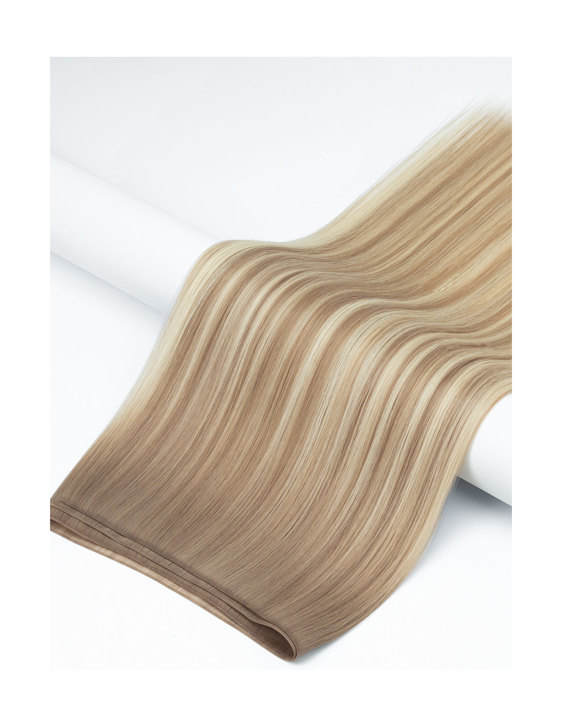 Le tissage cheveux Genius Weft Balayage Sable est conçu pour obtenir une longueur élégante avec une fixation quasi invisible. La bande Genius Weft est ultra fine et plate, ce qui permet une couture discrète, sans surépaisseur, même lorsque les cheveux sont portés lisses ou attachés.