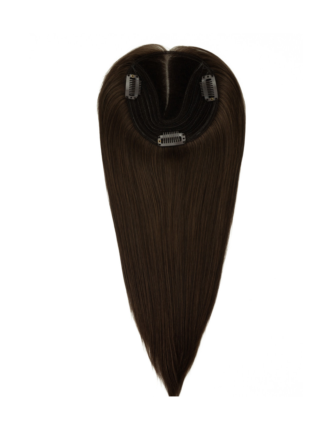 Topper en cheveux naturels 100 % Remy – Brun Foncé – 40 cm, 50 g
